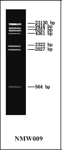 此 Marker 是由核酸內(nèi)切酶 Hind III 酶切 Lambda DNA 而成,使用于瓊脂糖凝膠電泳中 DNA 條帶的分析。