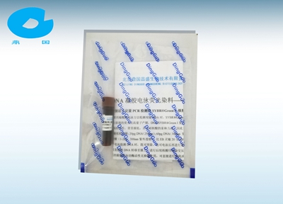 采用瓊脂糖電泳或聚丙烯酰胺電泳方法檢測雙鏈 DNA 時,SYBR®Green I 是最靈敏的熒光染料,當(dāng)其結(jié)合到核酸上時,會產(chǎn)生很強的熒光及高量子產(chǎn)額,DNA/SYBR®Green I 復(fù)合物的量子產(chǎn)額約為 0.8。由于與核酸結(jié)合后能產(chǎn)生很強的信號,背景極低,并且對核酸的親和力高,因此 SYBR 染料可在低濃度條件下使用。SYBR®Green I 的最低檢出限:20pg DNA(254nm);60pg DNA(300nm 紫外透射);此外,SYBR®Green I 還可以用于檢測寡核苷酸(1-2ng,300nm 紫外透射),比 EB 靈敏 20 至 100 倍。
